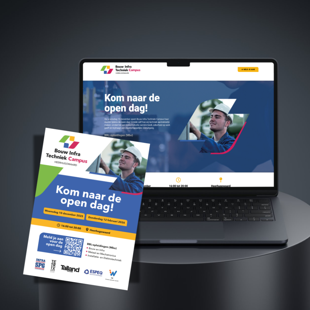 Bouw Infra Techniek Campus Heerhugowaard wilde een landingspagina waarop jongeren zich eenvoudig kunnen aanmelden voor de open dag. De pagina moest overzichtelijke en relevante informatie bevatten, met een duidelijke focus op aanmelden.