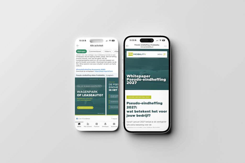 Voor ProMobility hebben we een sterke en consistente basis neergezet voor merk en communicatie. Met een subtiele optimalisatie van het logo, een helder brandbook en drie strategische thema’s – Alles goed geregeld, Voorblijven en Samen meebewegen – ligt er nu een duidelijke richting voor alle uitingen. Vanuit deze basis bouwen we verder aan de website, online marketing en social media om ProMobility stevig te positioneren als toekomstgerichte mobiliteitspartner.